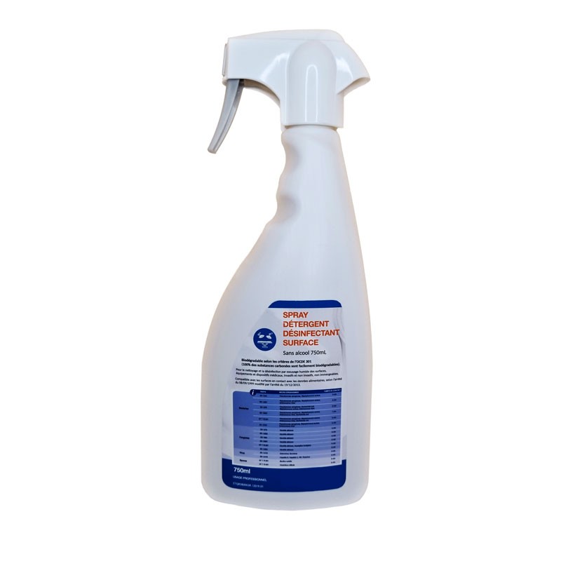 Le spray Désinfectant à large spectre est sans alcool et biodégradable - toutes surfaces - Classe Médicale - 750 ml