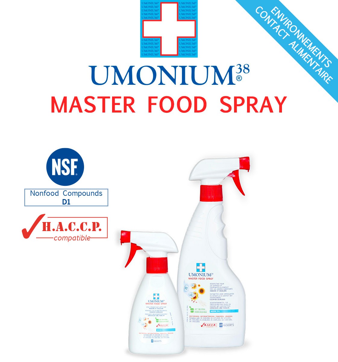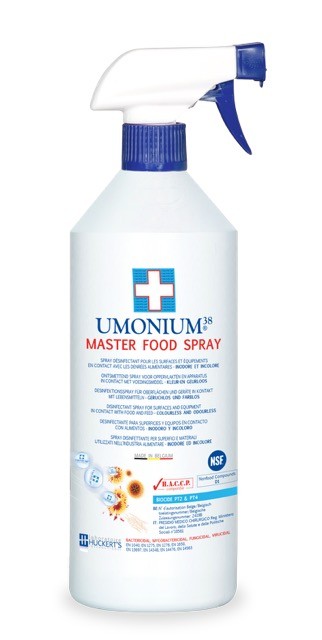 Désinfectant ultra rapide avec spectre total, l' UMONIUM38® MASTER FOOD élimine, en une seule vaporisation, tous les germes présents sur les surfaces traitées (inclus la Salmonella, la Listeria, le B.K., MRSA, le Pseudomonas, le Norovirus et le Rotavirus).