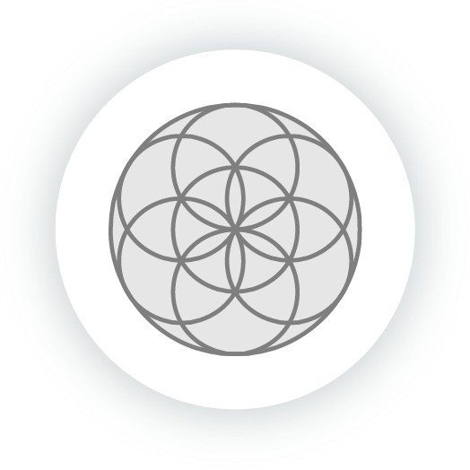 Le nombre d’or (la structure que l’on retrouve dans la nature), le symbole OM (le son de la création), la couleur bleue pour solariser l'eau, la graine de Vie, pulsant depuis le fond de la bouteille, et la gratitude.